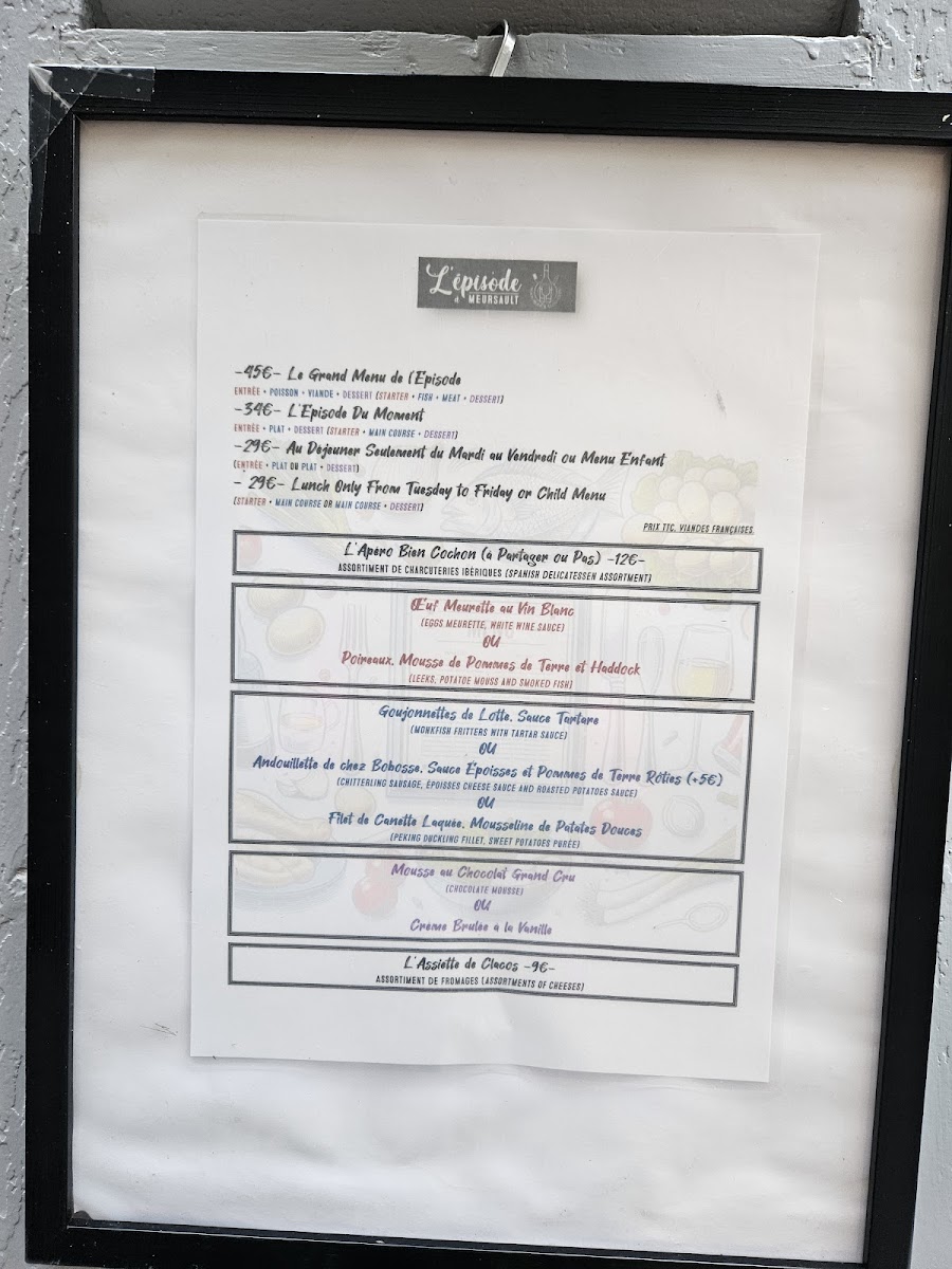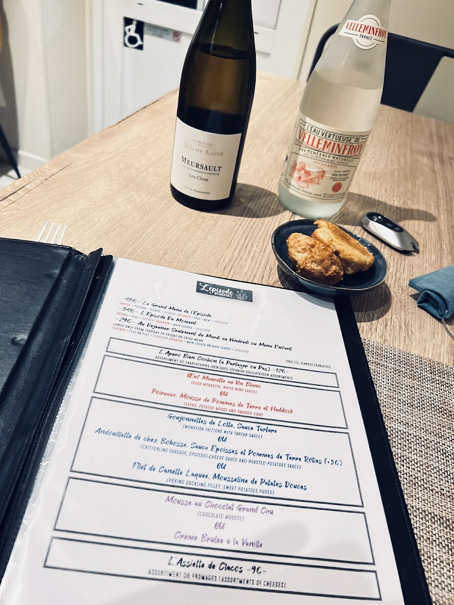 Welcome to L'épisode, a charming restaurant nestled in the heart of Meursault, France. Known for its delightful culinary offerings and inviting atmosphere, L'épisode has garnered rave reviews from patrons seeking an unforgettable dining experience. Diners praise the outstanding food, crafted with love and attention to detail. Highlights include the exquisite perfect egg, beautifully cooked scallops accompanied by a rich sauce and creamy mashed potatoes, and a sumptuous chicken dish drizzled with epicé cheese sauce. As you indulge in these flavors, enjoy the lively ambiance enhanced by an eclectic 80s soundtrack. The warm, knowledgeable staff, led by the charismatic Nico, ensures every visitor feels welcomed, making each meal feel special. With a thoughtfully curated wine selection and reasonable set menu options, L'épisode promises exceptional value and a memorable dining journey. This gem in Burgundy is a must-visit for food lovers looking to savor exquisite dishes.